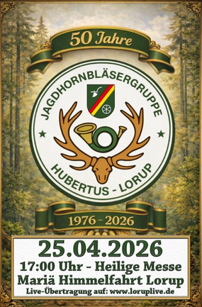 Unsere nächste Übertragung ist am 25.04.26 die Jubiläumsmesse der Jagdhornbläsergruppe Hubertus Lorup anläßlich ihres 50-jährigen Bestehens